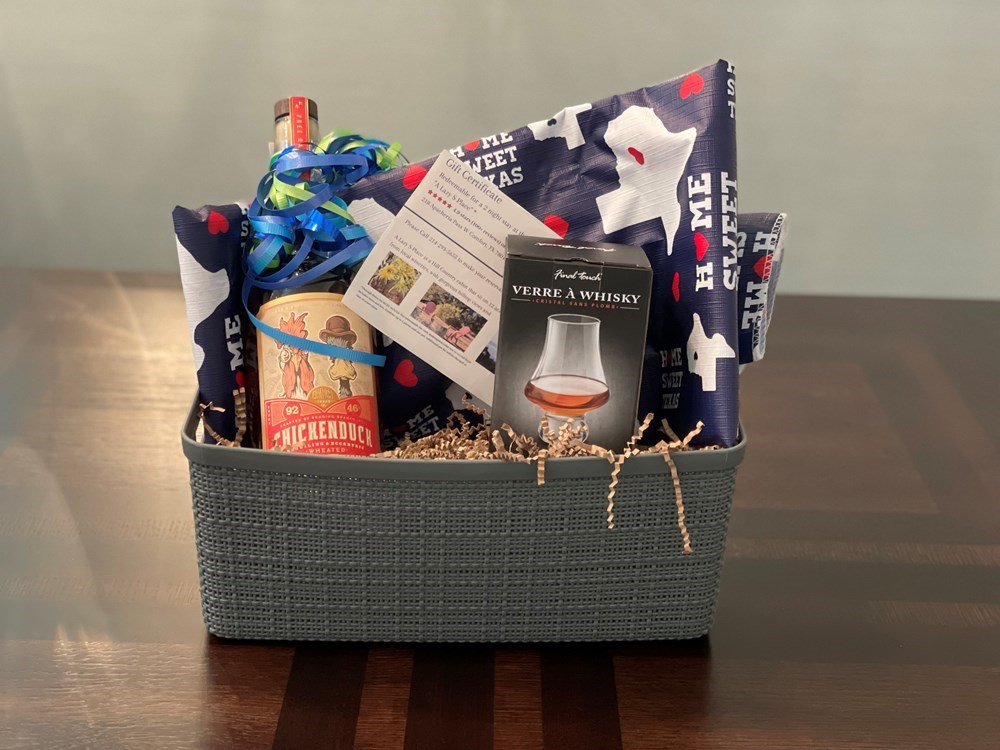 Sit back and enjoy a 2 night stay in a cozy Hill Country cabin while sipping on Chicken Duck Bourbon.