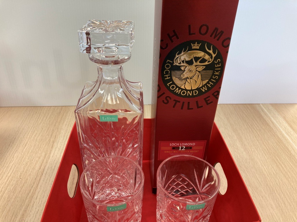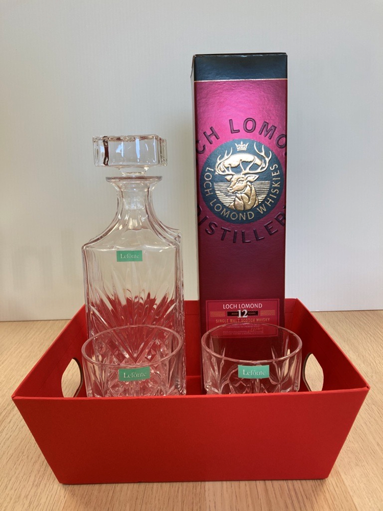 Let this whisky decanter set take your senses to Scotland! Package includes: Crystal Decanter with two matching glasses Bottle of Loch Lomond 12 Year Scotch Whisky