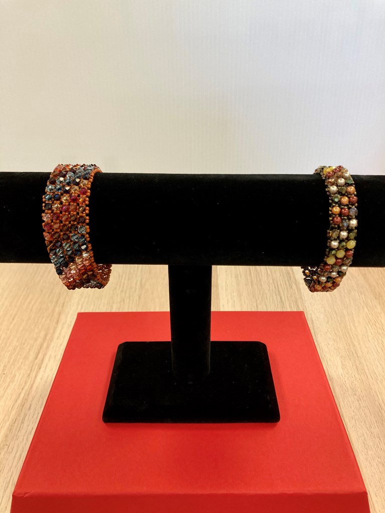 Two (2) Handmade Beaded Bracelets Snap closure.